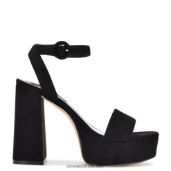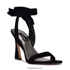 صندل بكعب كاحل ملفوف من kelsie Nine West L00FD22038 جلد الغزال الأسود