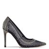 تضفي مضخة Fileen ذات المقدمة المدببة بريقًا وأناقة على هذه الصورة الظلية الكلاسيكية. تتميز هذه المضخة بجزء علوي شبكي شفاف مرصع بالجواهر وكعب عالٍ بحجر الراين مغطى بأحجار الراين.