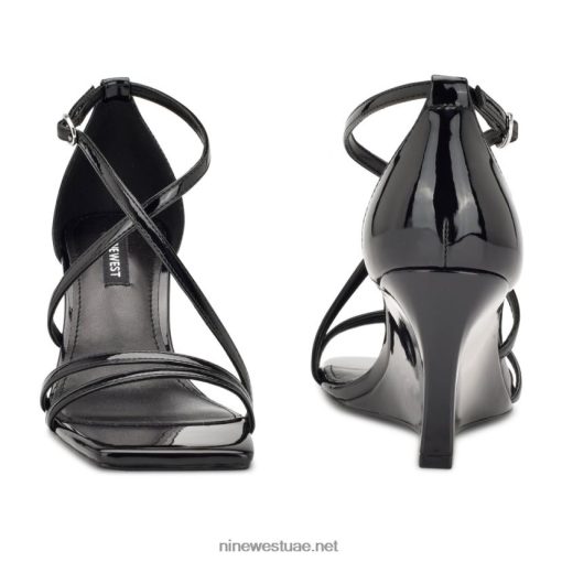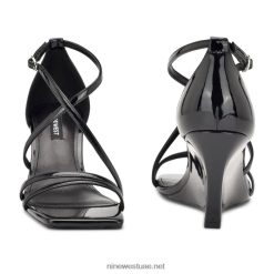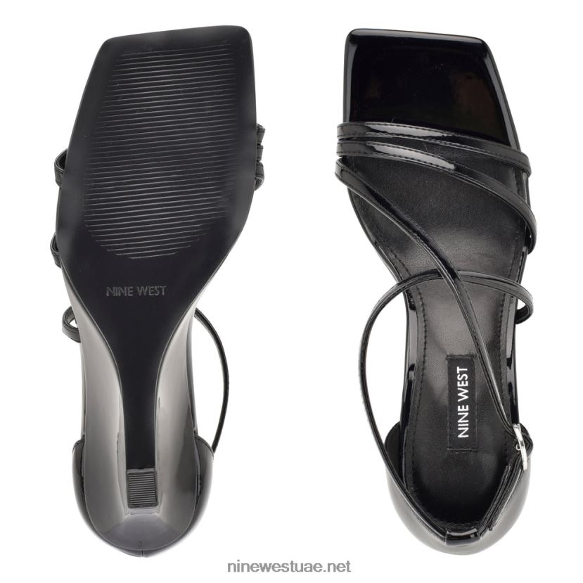 موفا صندل بكعب رباط الكاحل Nine West L00FD2441 أسود براءة اختراع