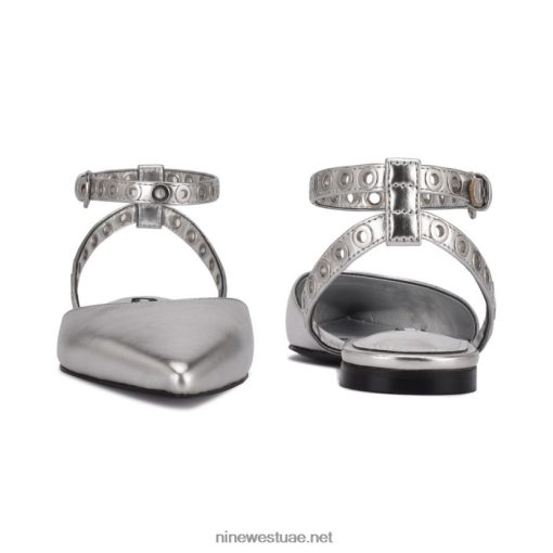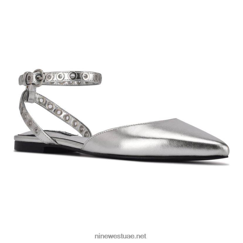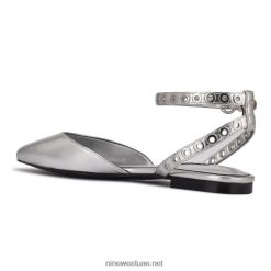 الحلقات المعدنية على حزام الكاحل النحيف تضيف لمسة من الروك وتدحرج إلى مقدمة القدم المسطحة بريز.