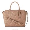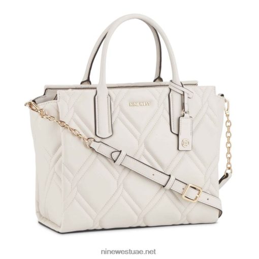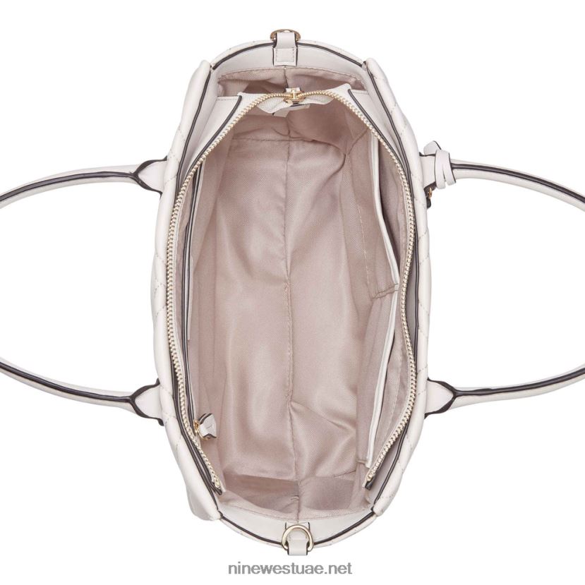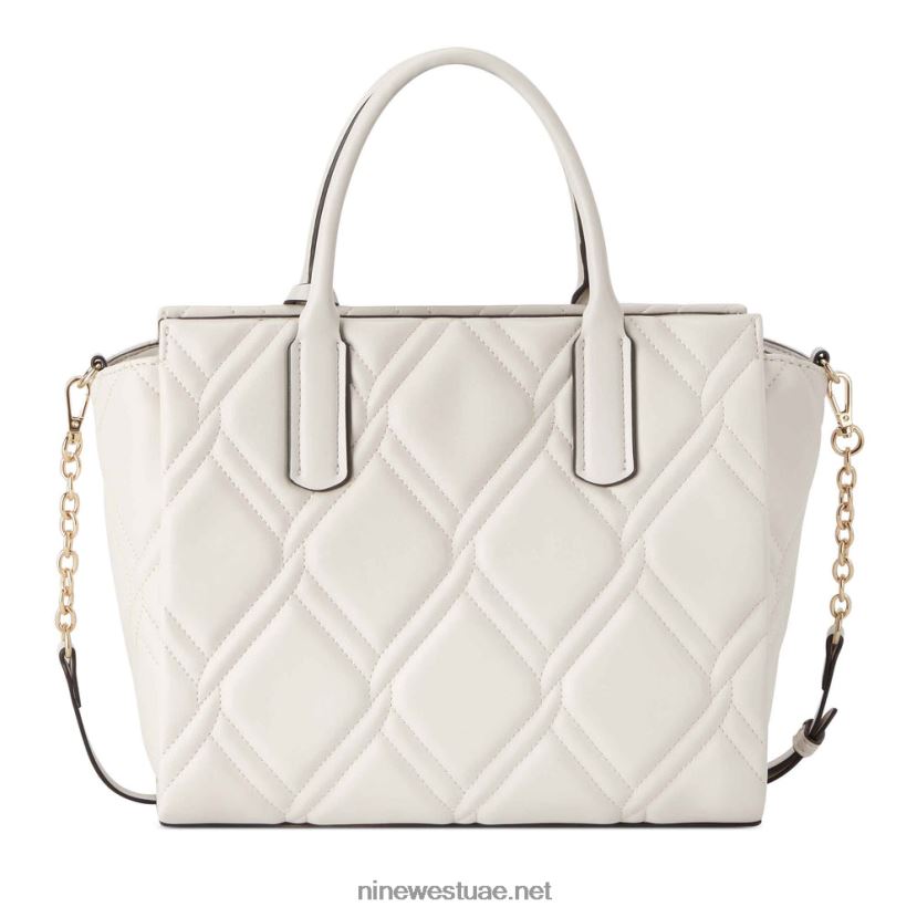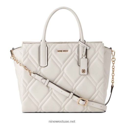 حقيبة مبطنة من تصميم ناين ويست مع تفاصيل زينة وخامة نابا ناعمة تشبه الزبداني. تنظيم داخلي وحزام كتف قابل للإزالة لسهولة التصميم بدون استخدام اليدين