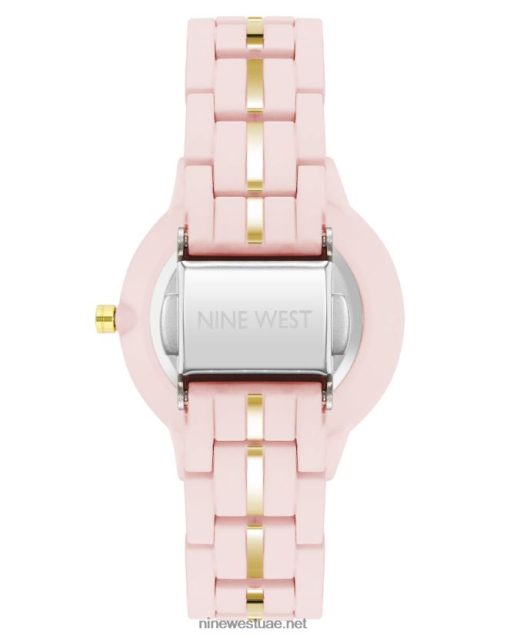 ساعة معدنية بسوار مطاطي معلمة Nine West L00FD22904