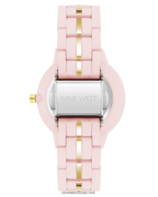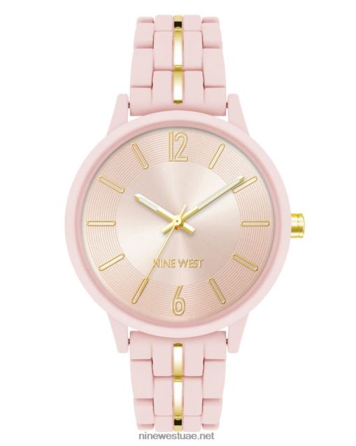 - ميناء وردي فاتح مع عقارب وعلامات ذهبية مملوءة باللون الأبيض li>