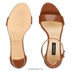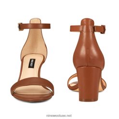صندل برباط على الكاحل بكعب عريض Nine West L00FD22404 جلد بني فاتح