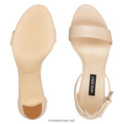 صندل برباط على الكاحل بكعب عريض Nine West L00FD22405 جلد عاجي