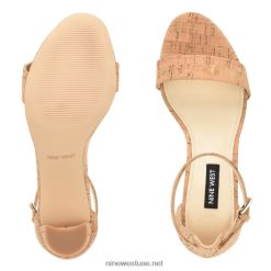 صندل برباط على الكاحل بكعب عريض Nine West L00FD2334 الفلين الطبيعي