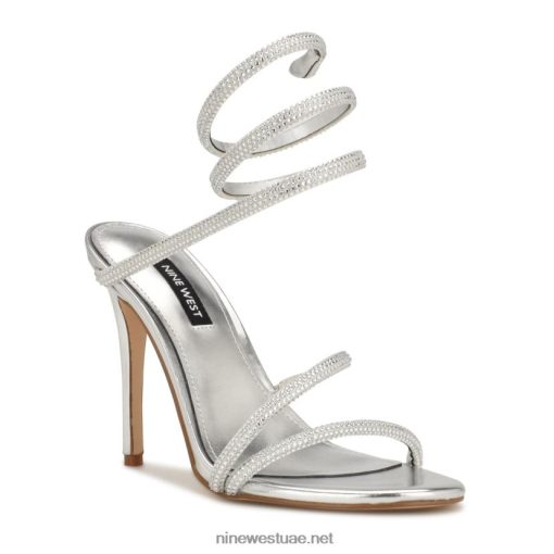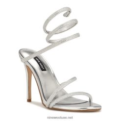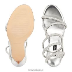 صندل بكعب من مسكيل Nine West L00FD2290 بريق الفضة الجلد المدبوغ
