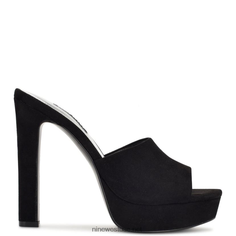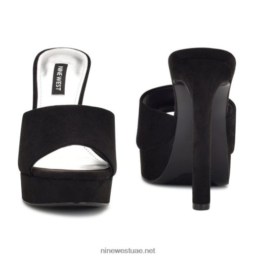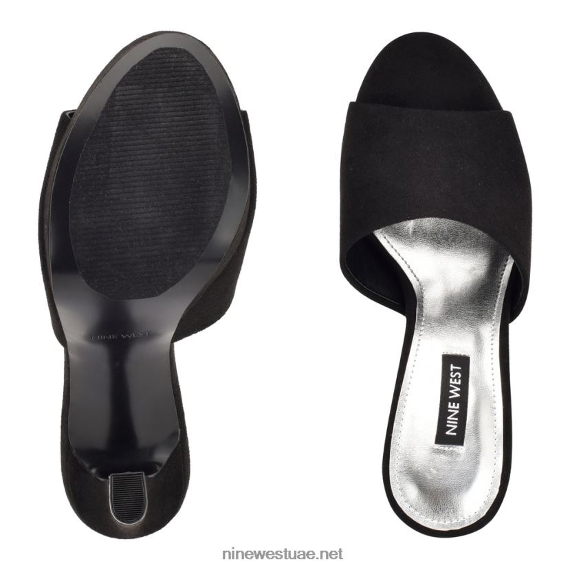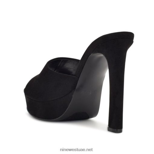 صندل ذو نعل سميك ويليا Nine West L00FD2314 جلد الغزال الأسود