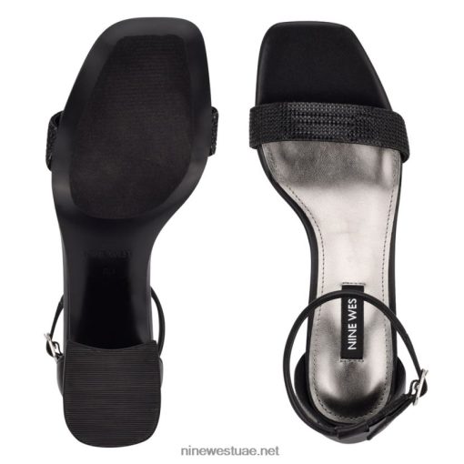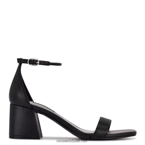 صندل رباط الكاحل بكعب عريض Nine West L00FD2495 الماس الأسود