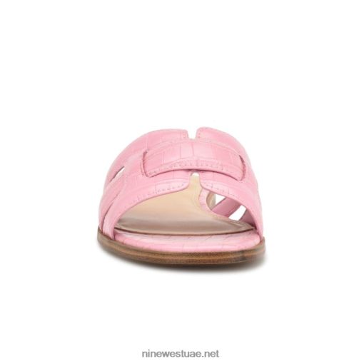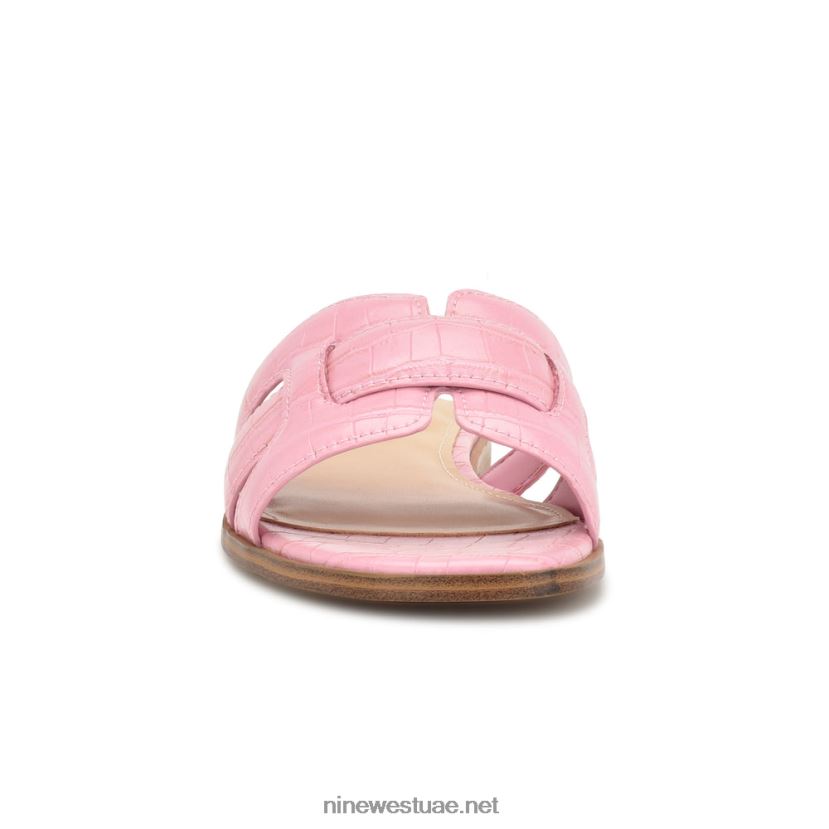 صندل جرماني مسطح منزلق من جلد التمساح الوردي المتوسط