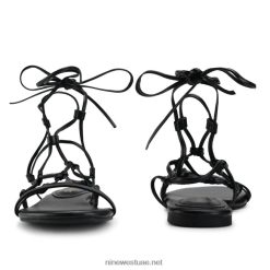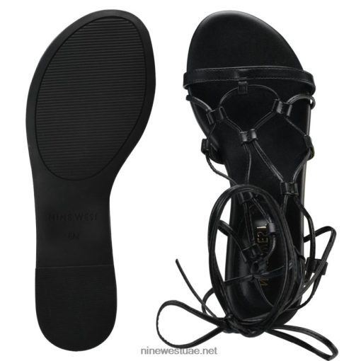 صندل مسطح ملفوف بأزرار للكاحل Nine West L00FD266 أسود