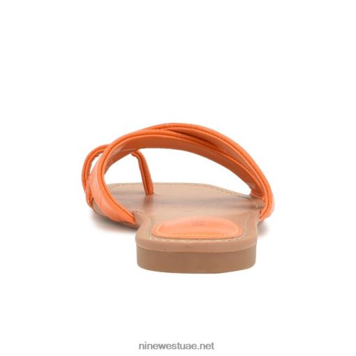 صندل مسطح منقط باللون البرتقالي منقوش جلد التمساح