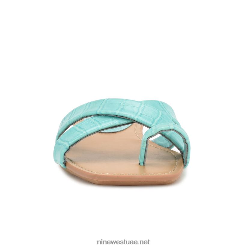 صندل مسطح منقط من جلد التمساح المنقوش