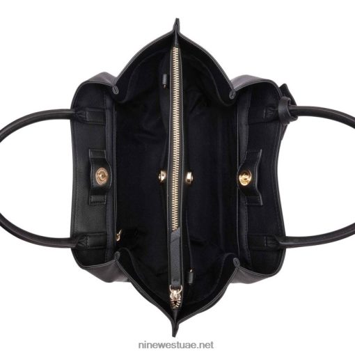 حقيبة ناين ويست مصممة مع الزينة وتفاصيل مشبك عقدة. تنظيم داخلي وحزام كتف قابل للإزالة لسهولة التصميم بدون استخدام اليدين