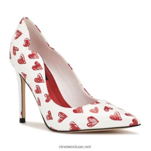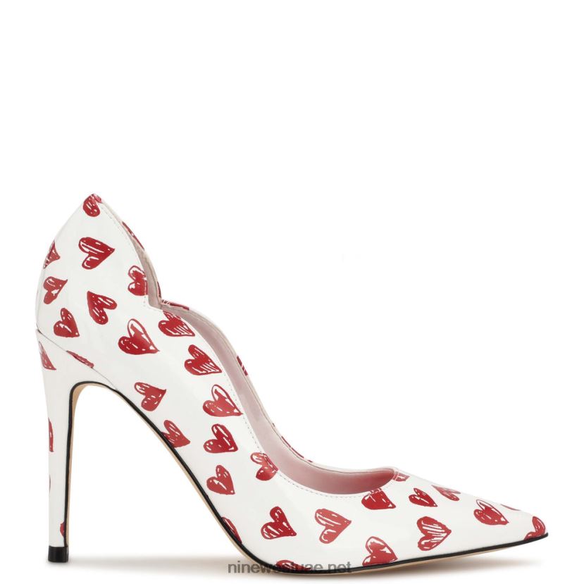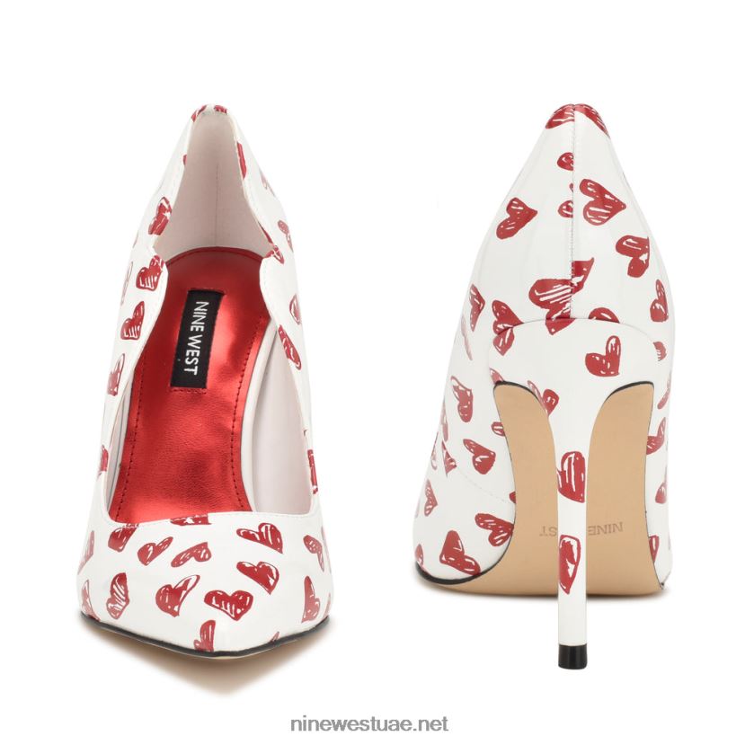 مضخات إصبع مدبب ماكر Nine West L00FD21265 براءة اختراع طباعة القلب الأبيض / الأحمر