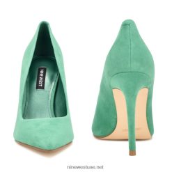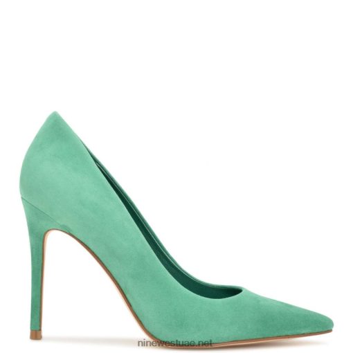 مضخات اصبع مدبب جديدة Nine West L00FD21273 جلد الغزال الأخضر