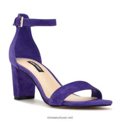 صندل برباط على الكاحل بكعب عريض Nine West L00FD22156 جلد الغزال الأرجواني