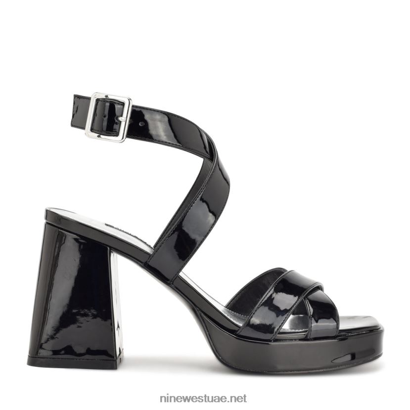 موفا صندل بكعب رباط الكاحل Nine West L00FD2441 أسود براءة اختراع