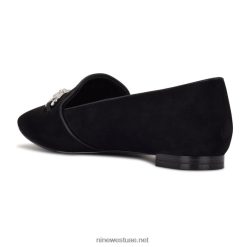 صندل بكعب كاحل ملفوف من kelsie Nine West L00FD2623 جلد الغزال الأسود