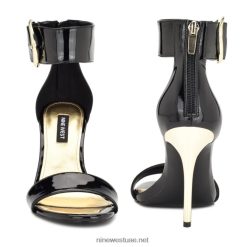 موفا صندل بكعب رباط الكاحل Nine West L00FD2441 أسود براءة اختراع