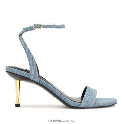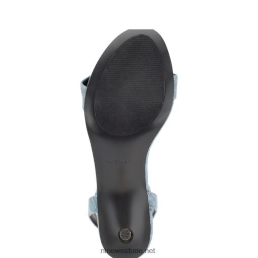 anny صندل بكعب رباط الكاحل Nine West L00FD2206 قماش الدنيم الأزرق