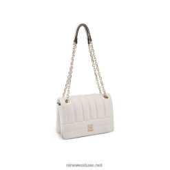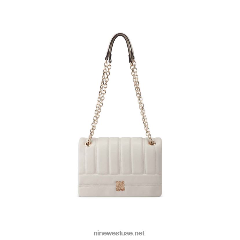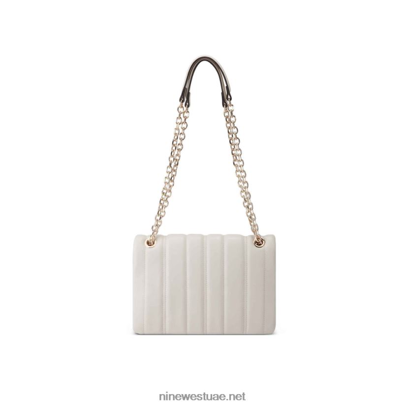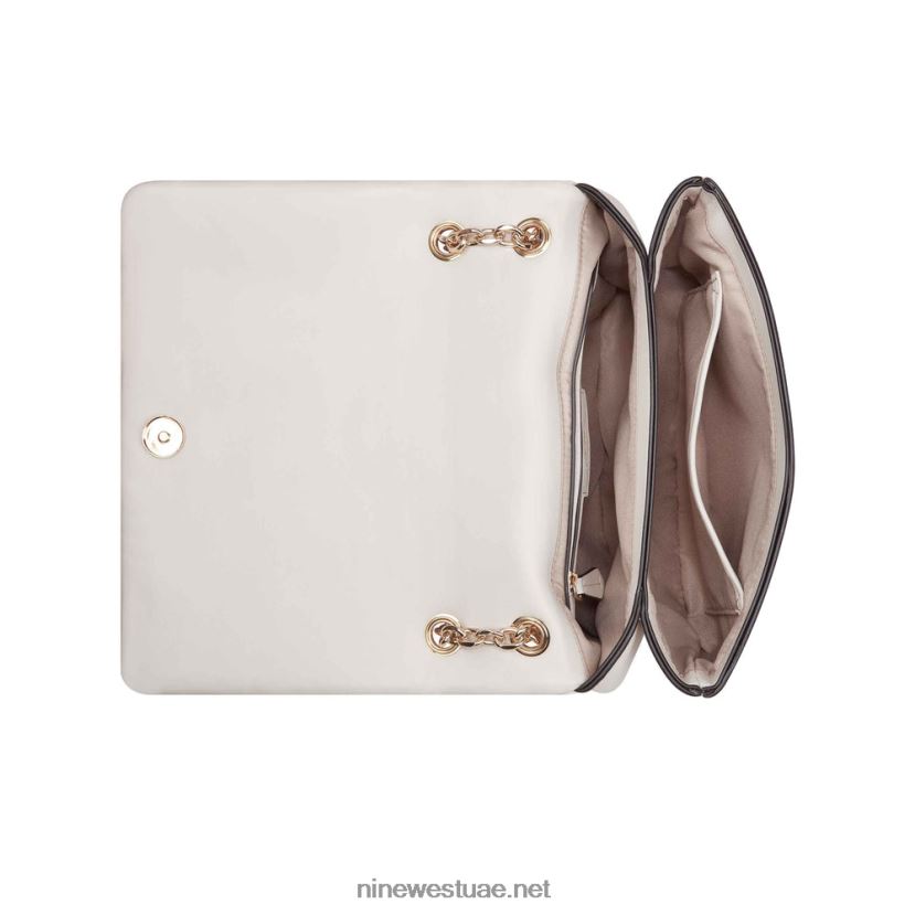 ناين ويست مصمم lelianna crossbody رفرف سلسلة قابلة للتحويل مع تفاصيل الأجهزة والعلامات التجارية الخارجية. مُصممة بخياطة على شكل قناة من مادة تشبه الخروف الفاخر.